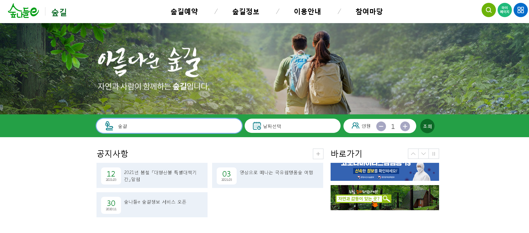 숲나들e 홈페이지 (https://www.foresttrip.go.kr/)