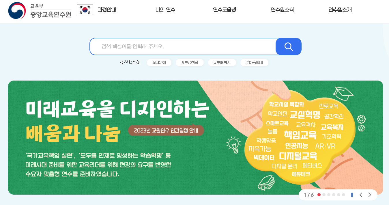 교육부 중양교육연수원의 연수 프로그램을 통하여 교원과 교육공무원이라면 자신의 분야에서 전문가가 될 수 있도록 노력해보시기 바랍니다.